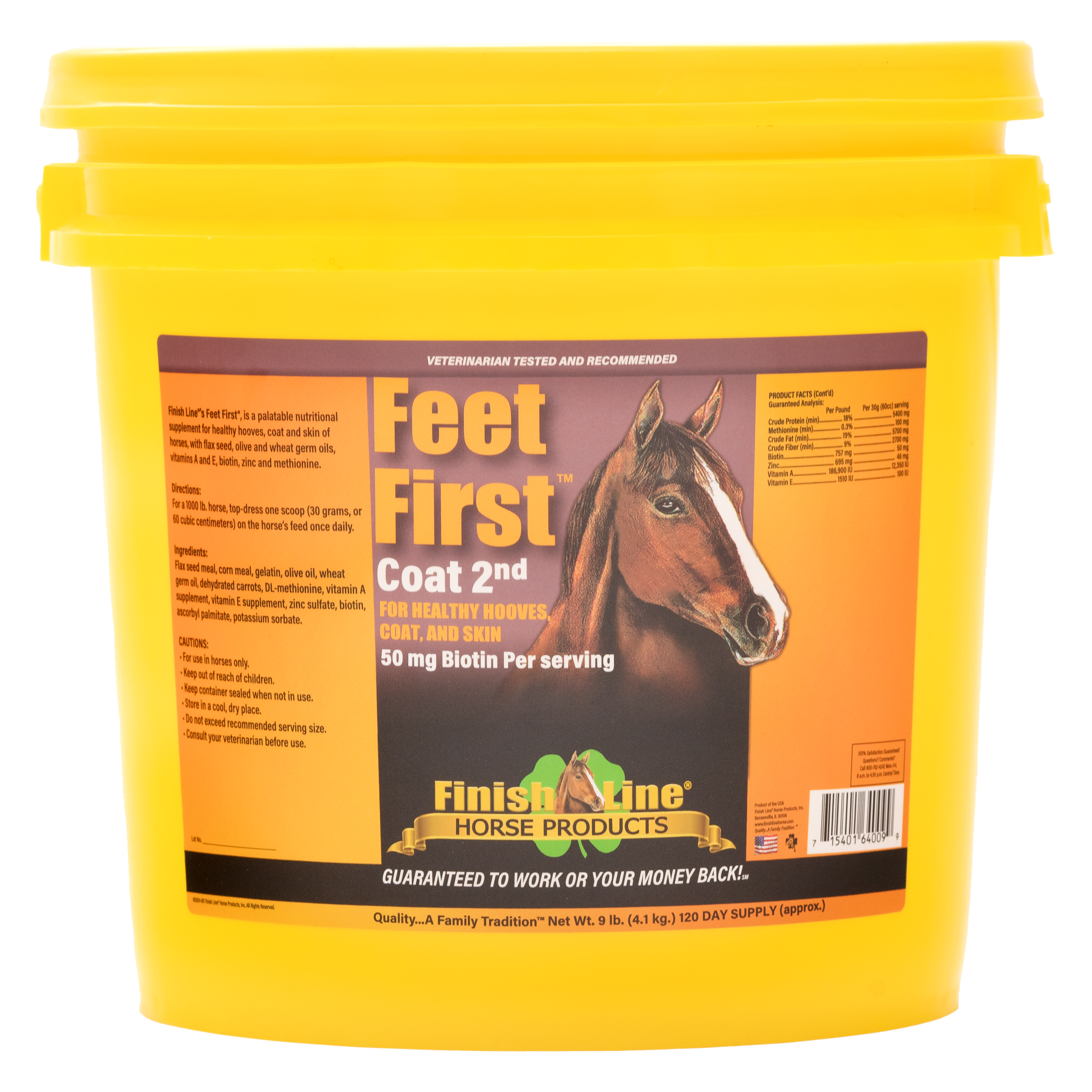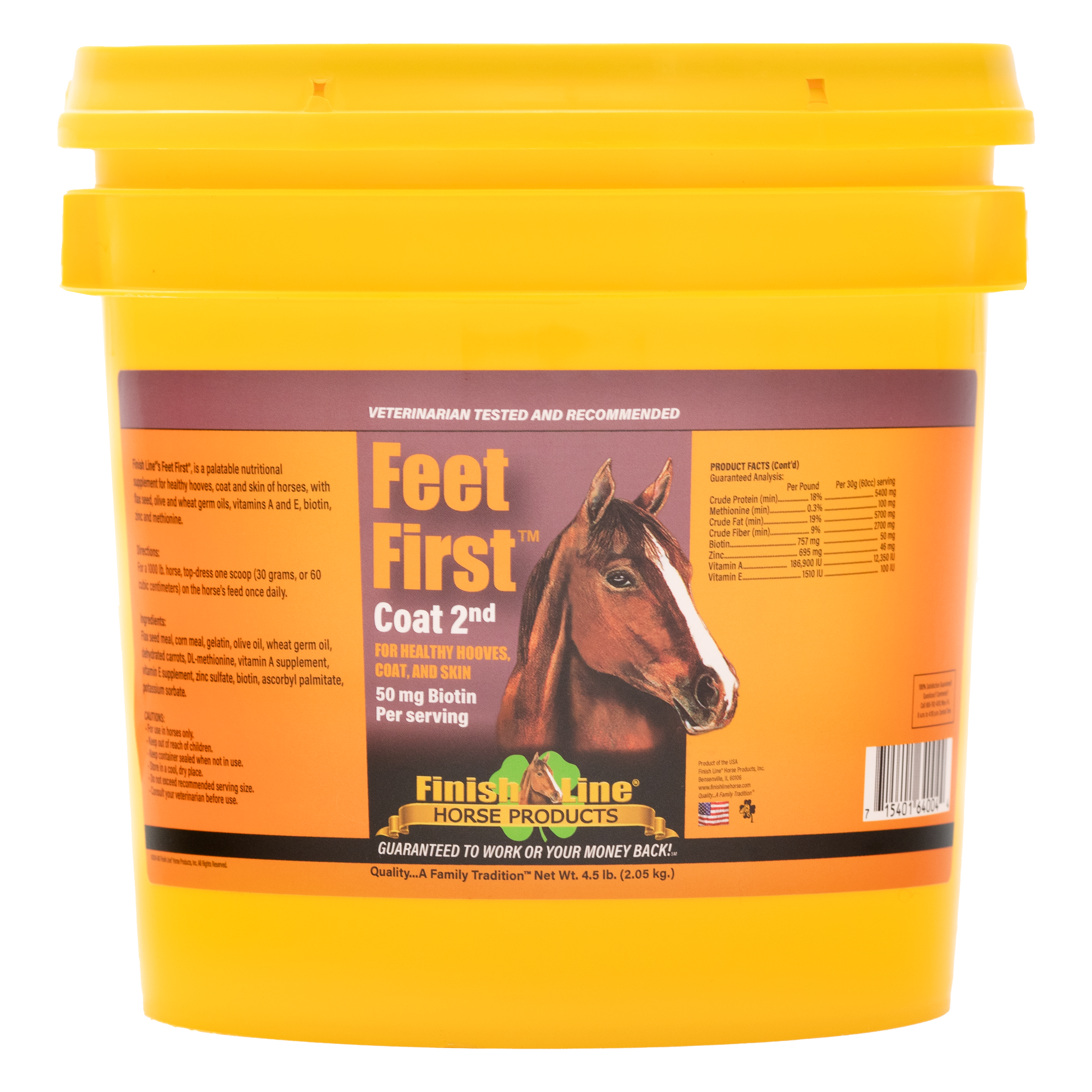 - Feet First® Coat 2nd helps promote healthy hooves, coat and skin